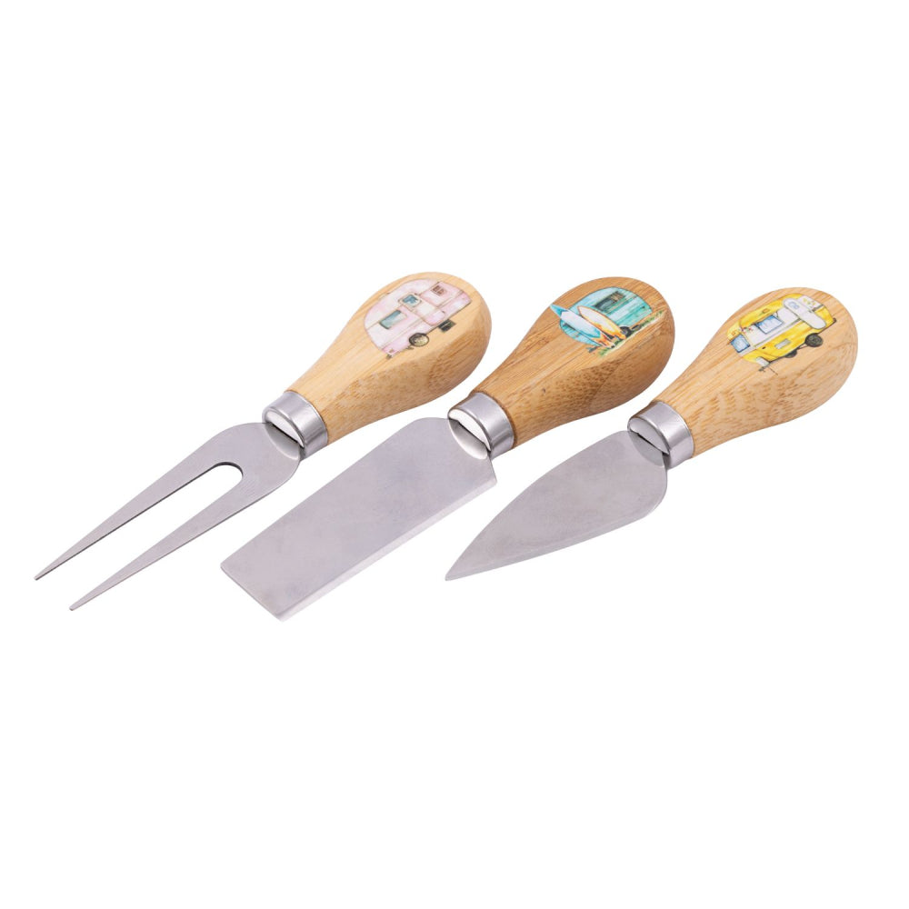 - Details: Set of bamboo cheese knives with a printed design on the handle.