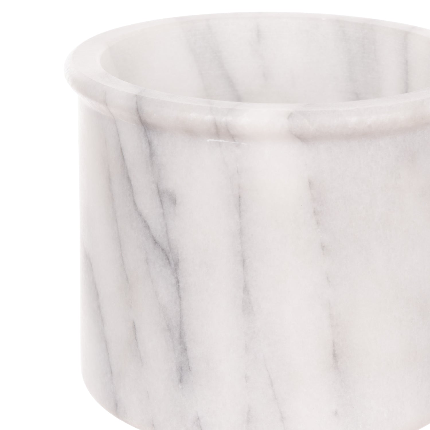 Made from luxurious white honed marble with subtle grey veins, it’s an opulent addition to any kitchen.