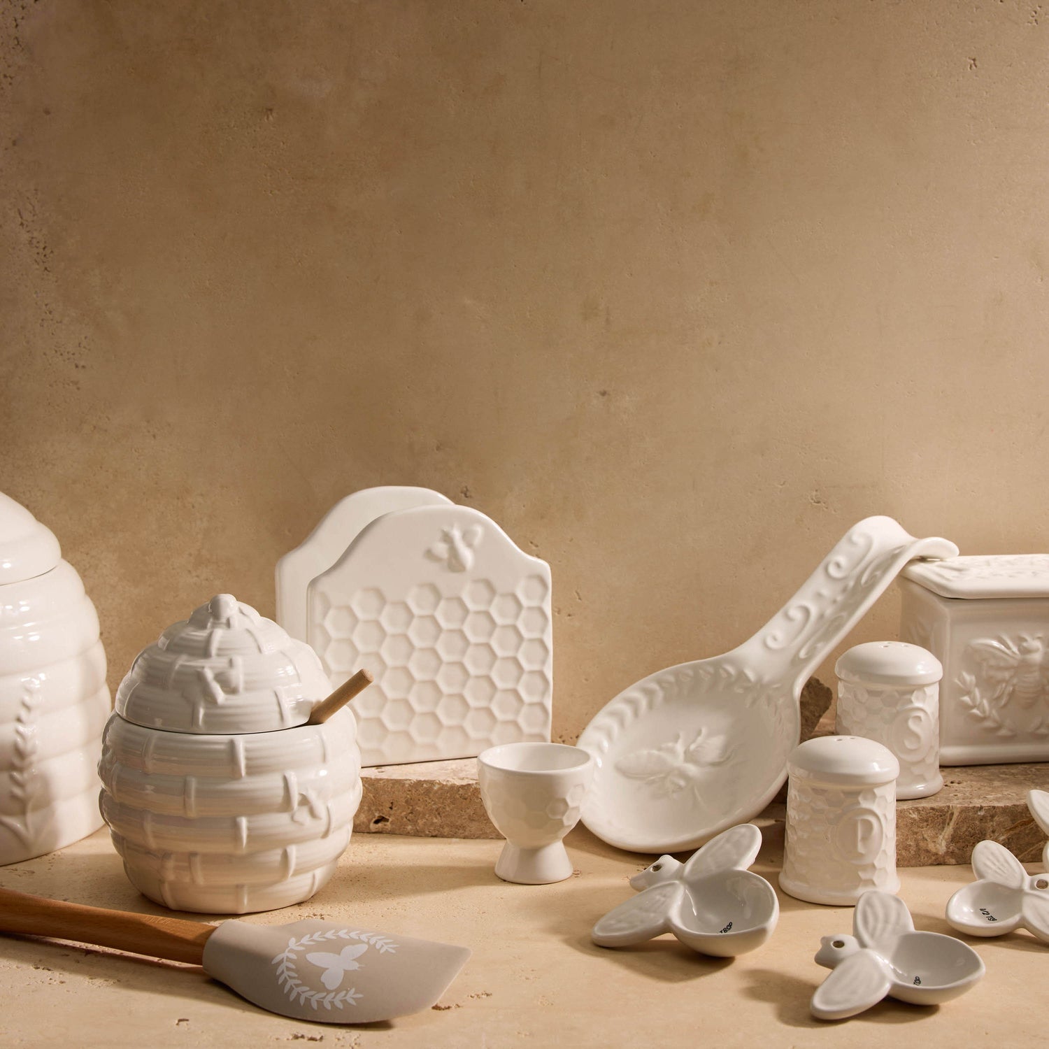 The Wildflower & Hive Storage Jar by Davis & Waddell brings a farmhouse aesthetic to your collection with a charming honey pot design. Adorned with tonal bees, it is perfect for storing biscuits, sugar or other kitchen sundries.