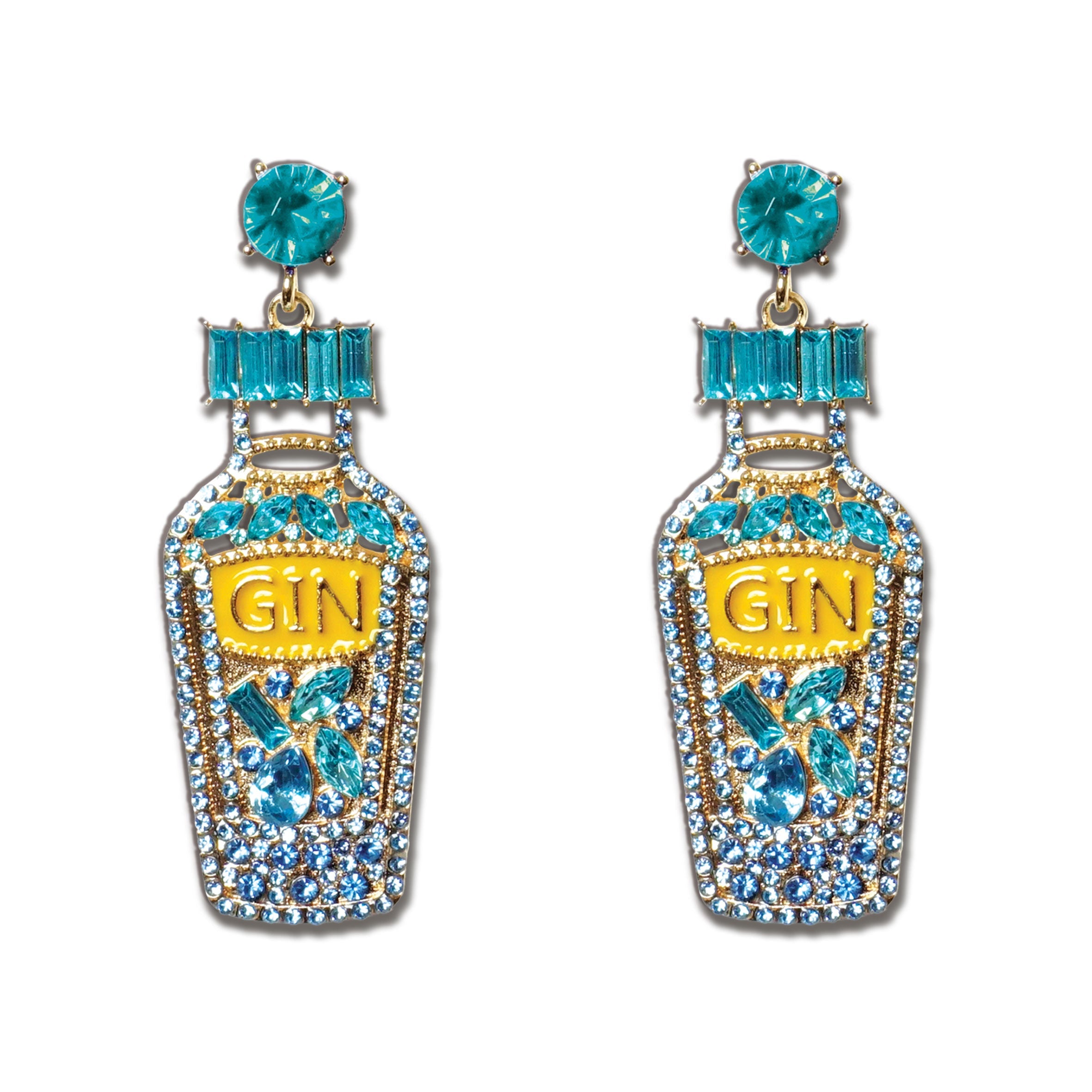 Our 'Party' earrings are the sparkly, fun accessory you can't do without this festive season. Add some pizzazz to any party dress or simply dress up your jeans & t-shirt ensemble! These earrings are our "GIN Influencer' aqua blue rhinestone gin bottles.