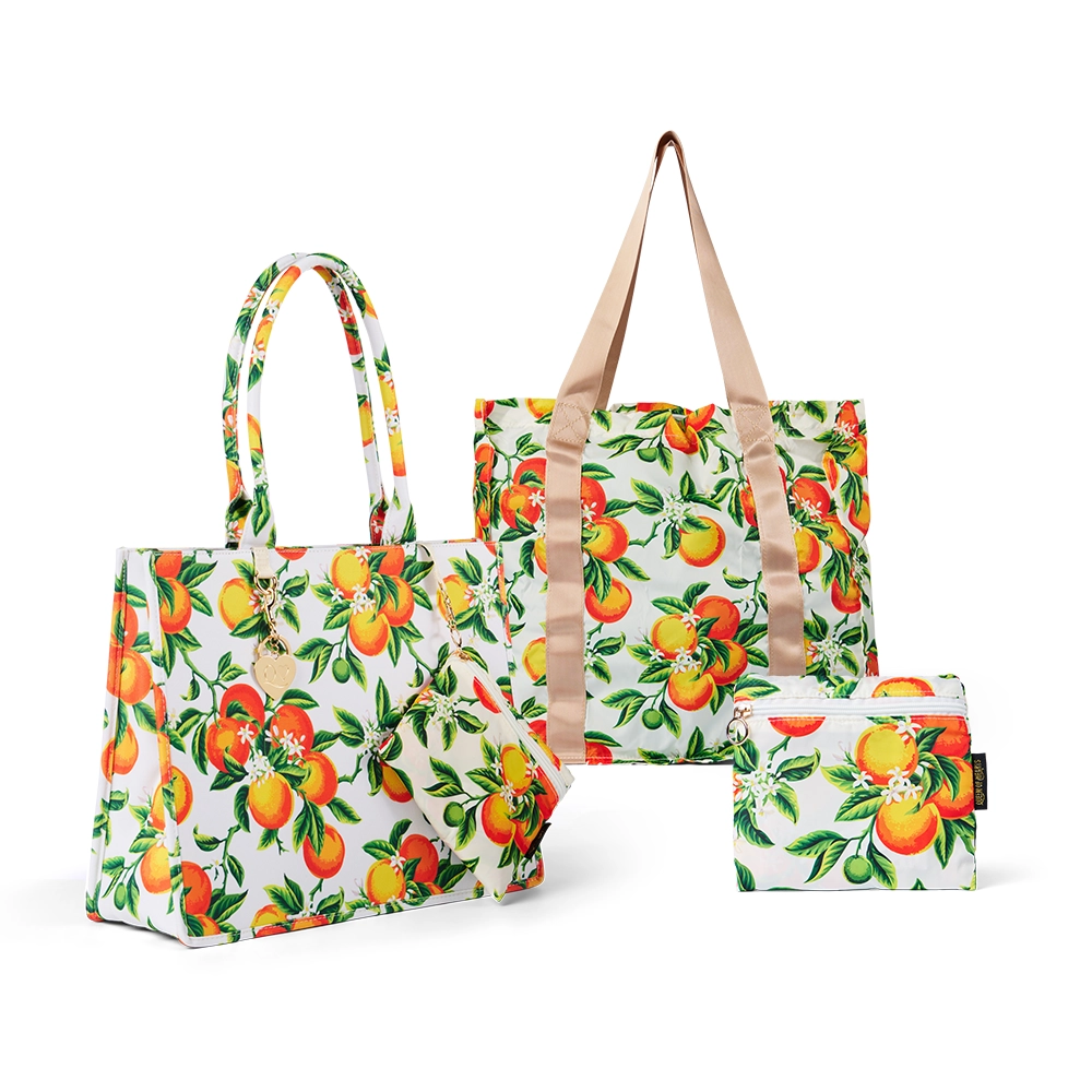 Never get caught without a bag again! The Foldable Shopper clips neatly inside your Tote, ready whenever you need it. Roomy enough for your lunch box and jacket on workdays or your groceries at the supermarket, it’s both practical and chic. The coordinating prints add a stylish touch that makes even everyday errands feel fabulous.